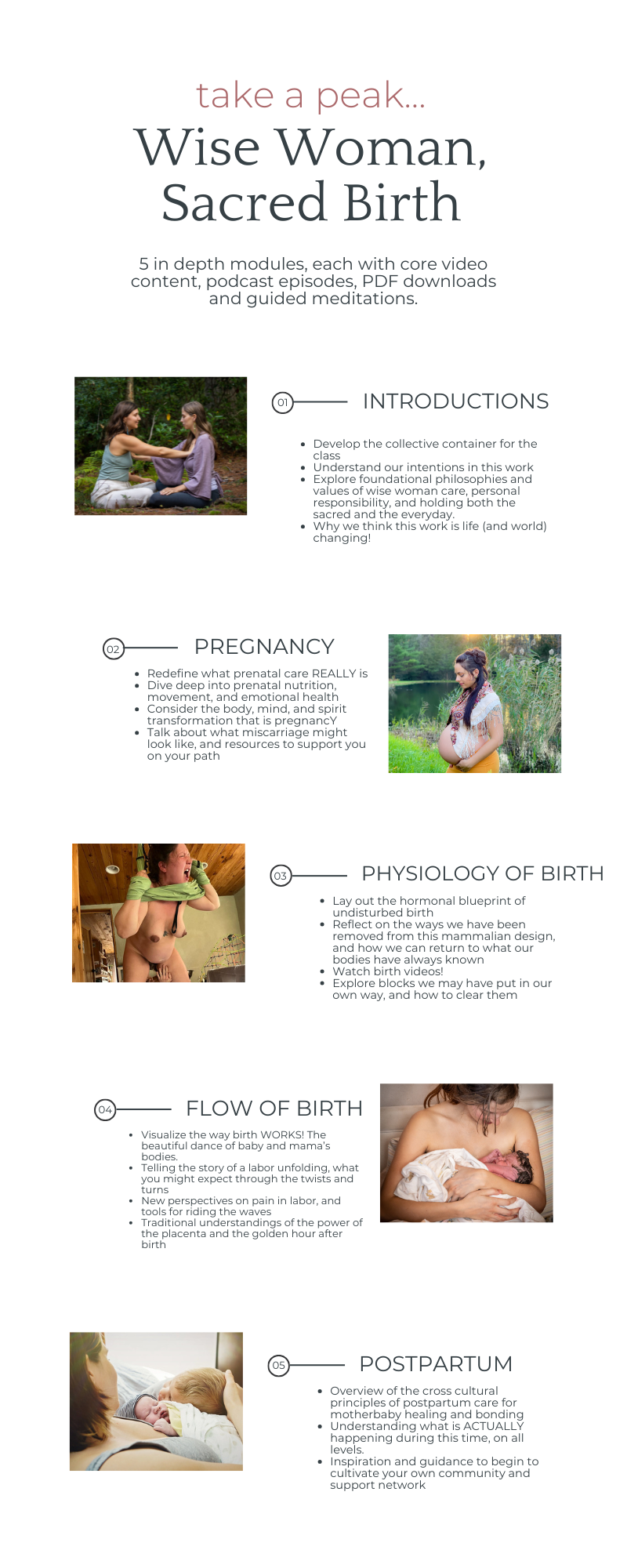 “Wise Women, Sacred Birth has provided me with a safe space to be able to fully embody and envision the birth that I want. Maible and Sarah have a wealth of knowledge and experience that provided me with new insights, especially in regard to prenatal testing and the physiology of birth, to have the confidence to speak with my care providers and really be clear in my vision for birth. The teachings and the resources provided were abundant but my favorite part was the homework and meditations. These parts of the course got me out of my head and held space for me to really feel into my birth experience and to remember that birth is a creative process and one that requires us to go inward and connect with our heart. I highly recommend this course to any pregnant mamas and/or women who dream of becoming a mother one day. This will prepare and educate you in such a beautiful way. ”